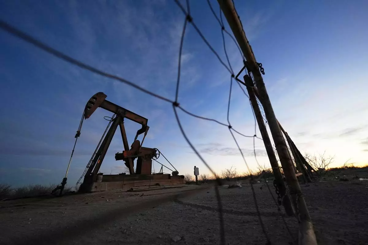 FILE - A pumpjack is visible before sunrise Feb. 26, 2025, in Kermit, Texas. (AP Photo/Julio Cortez, File)