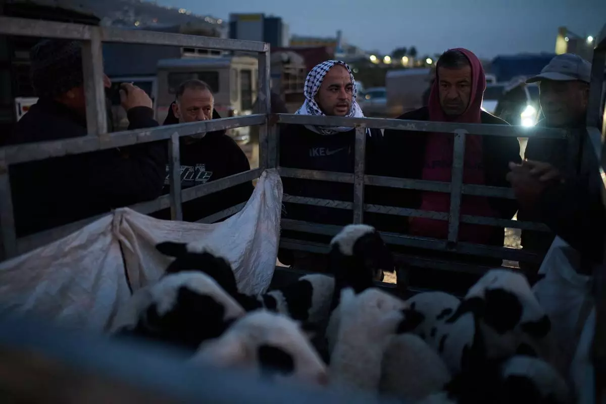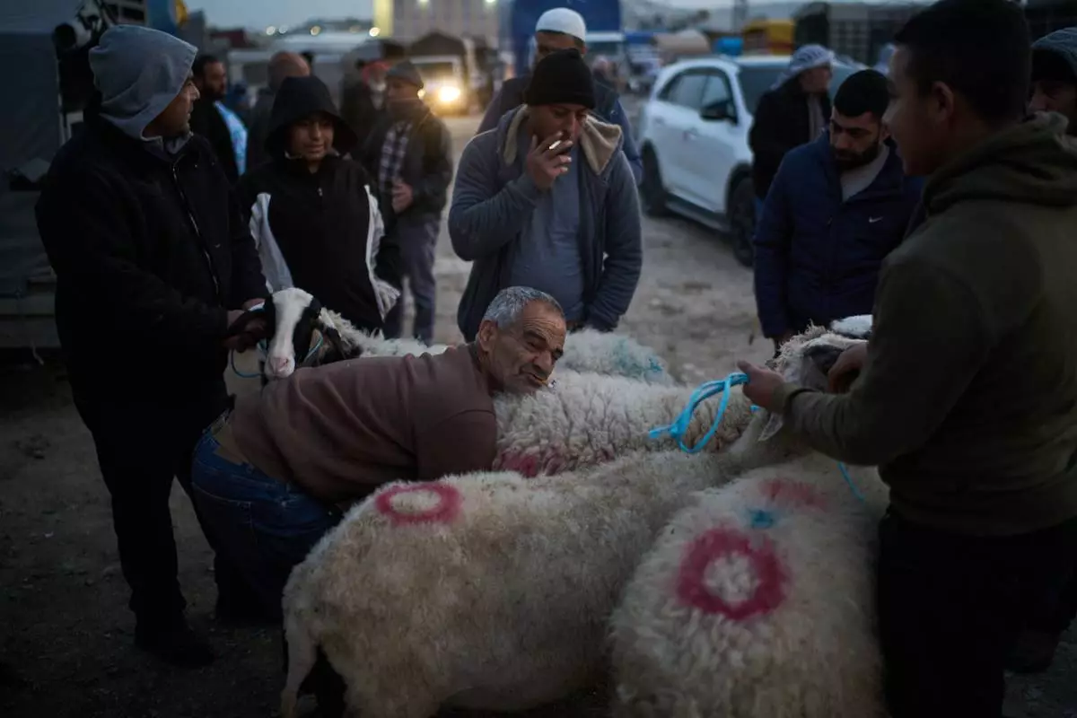 NABLUS, West Bank (AP) — Before dawn on the outskirts of Nablus in the occupied West Bank, Palestinians gather at a livestock market to buy sheep and goats.