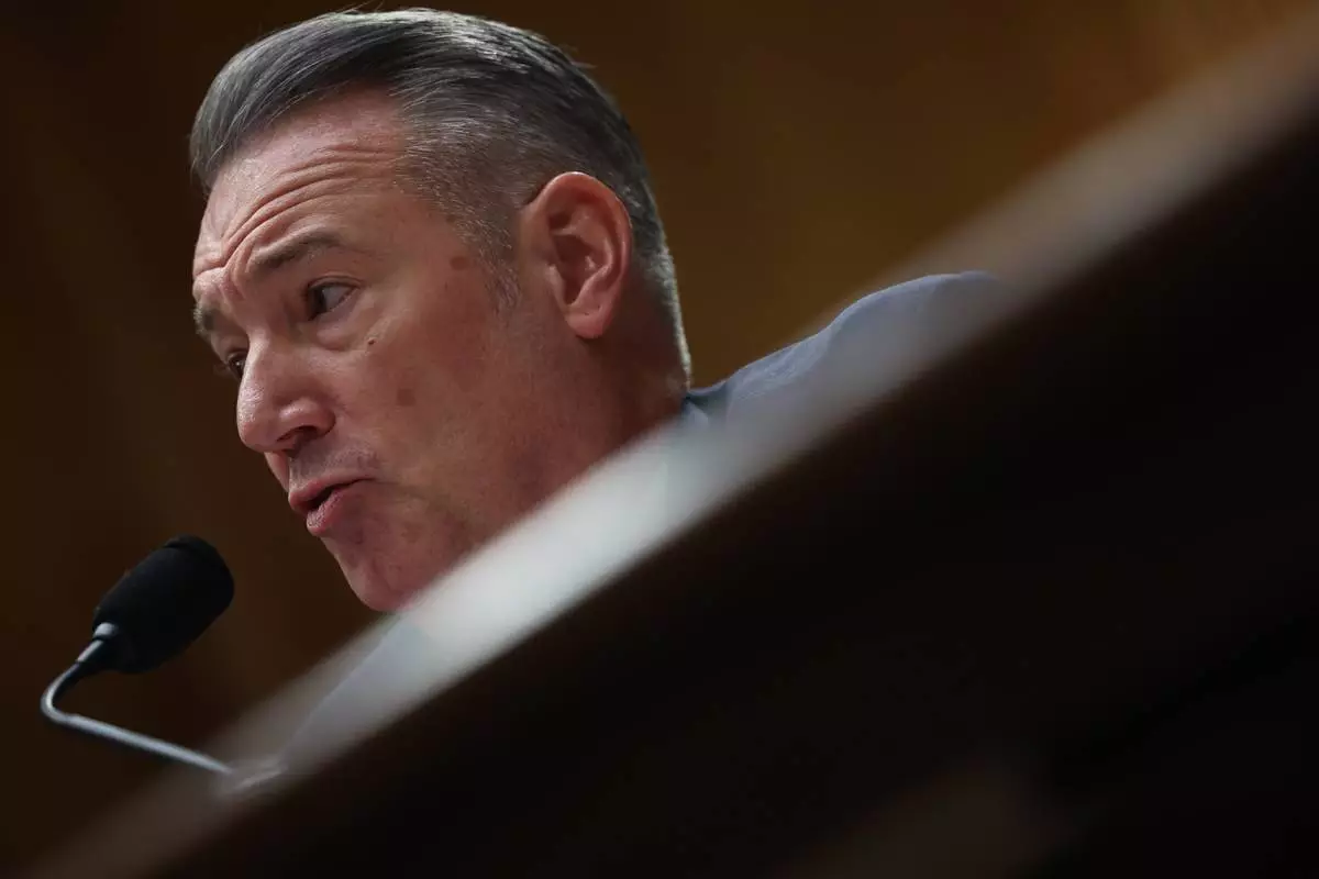 Todd Lyons, senior official performing the duties of the director at U.S. Immigration and Customs Enforcement, speaks during a Senate Homeland Committee hearing on Capitol Hill in Washington, Thursday, Feb. 12, 2026, in Washington. (AP Photo/Tom Brenner)