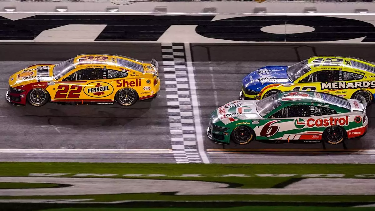 Joey Logano, (22) wins during the first of two NASCAR Daytona 500 qualifying auto races at Daytona International Speedway, Thursday, Feb. 12, 2026, in Daytona Beach, Fla. (AP Photo/Mike Stewart)