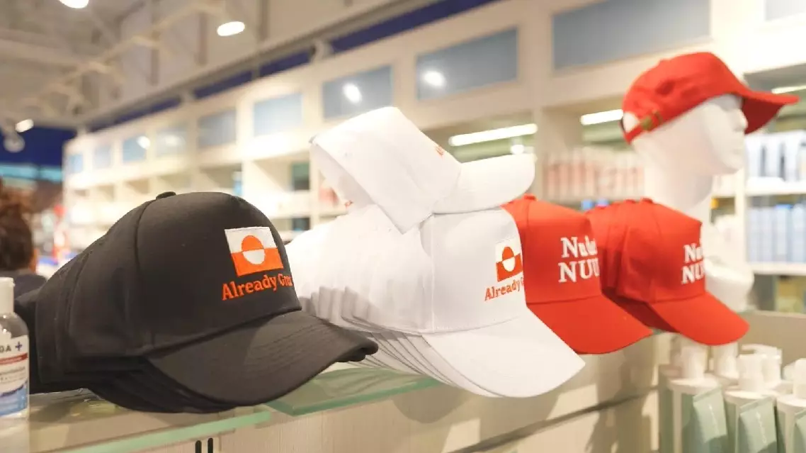 At one of the largest drugstores in Nuuk, caps featuring anti-U.S. slogans are displayed in the most prominent spot at the entrance and are the store's bestselling items.