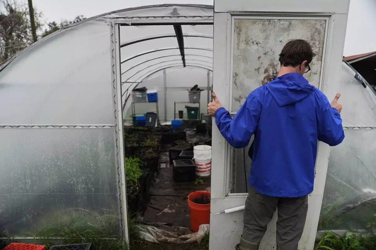 Andrew Ferris, executive director of the Coalition to Restore Coastal Louisiana, enters a greenhouse Friday, Jan. 23, 2026, at his organizations' restoration headquarters in Violet, La. (AP Photo/Joshua A. Bickel)