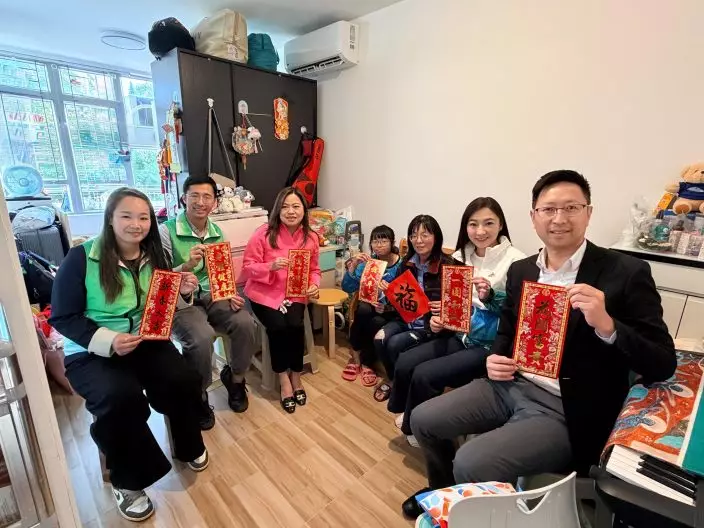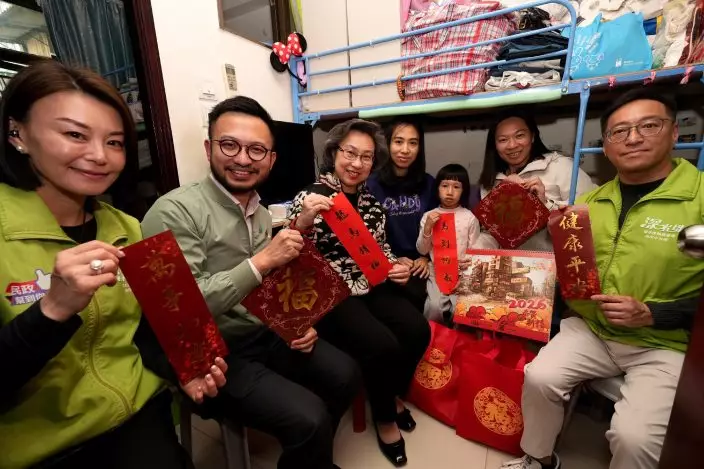 The Secretary for the Civil Service, Mrs Ingrid Yeung (third left), together with the District Officer (Sham Shui Po), Mr Oscar Wong (second left), a District Council member and representatives from the Care Team of the Sham Shui Po District, visited a family residing in the district today (February 13) to convey care and greetings before the Chinese New Year and celebrate the festive season together. Source: HKSAR Government Press Releases