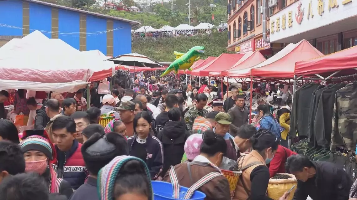 As the festive excitement grows, the market in Malipo County, Yunnan's Wenshan Zhuang and Miao Autonomous Prefecture, is already crowded with people early in the morning.