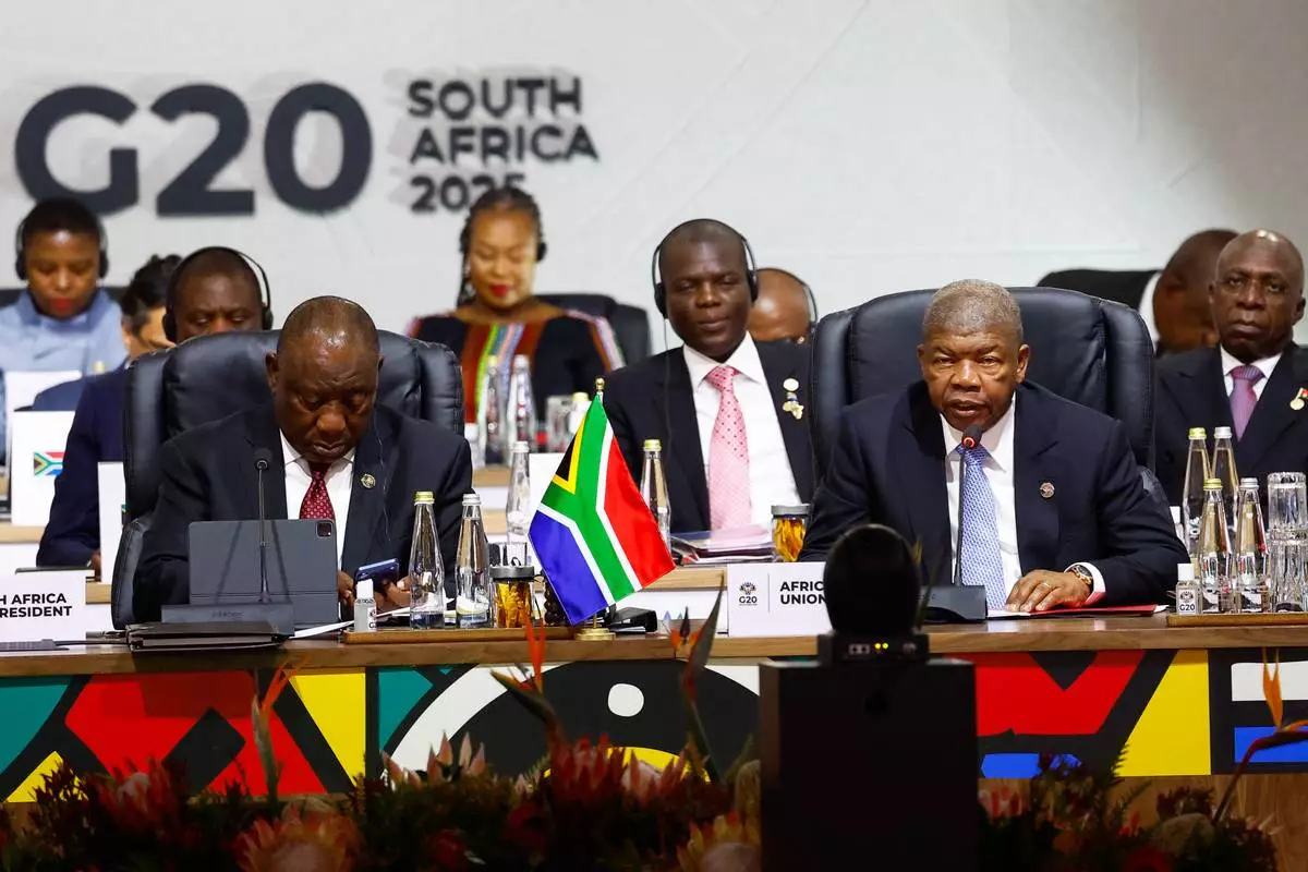 FILE - South African President Cyril Ramaphosa and Chairperson of the African Union Joao Lourenco attend a plenary session on the opening day of the G20 Summit, in Johannesburg, South Africa, Saturday, Nov. 22, 2025. (Thomas Mukoya/Pool Photo via AP, File)