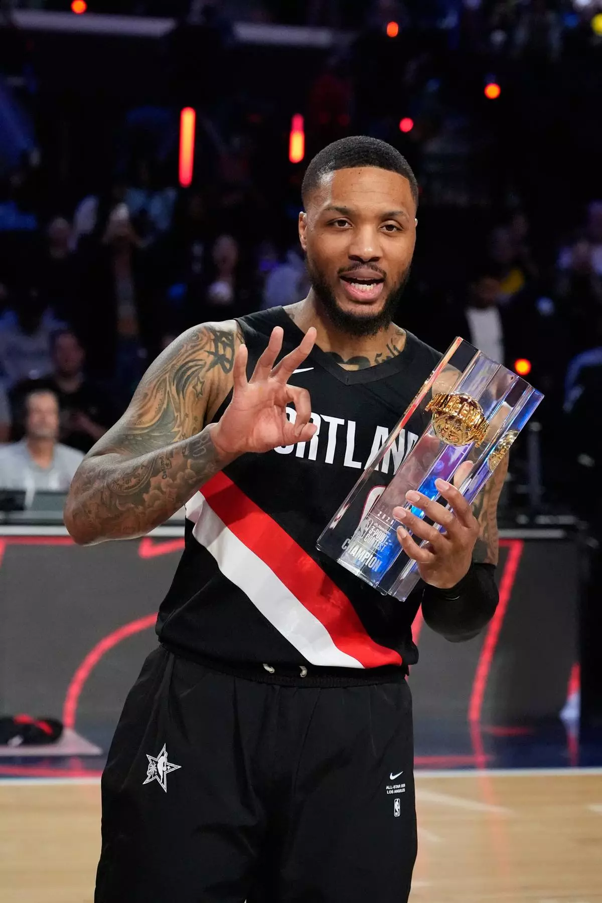 Damian Lillard isn't playing this season. He still scored big anyway, winning the 3-point contest over Devin Booker.