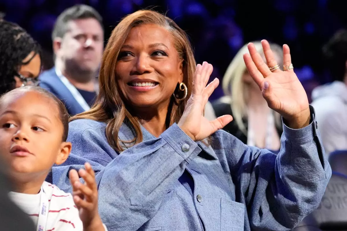 Queen Latifah attends the 3-point contest at the NBA basketball All-Star weekend festivities Saturday, Feb. 14, 2026, in Inglewood, Calif. (AP Photo/Mark J. Terrill)