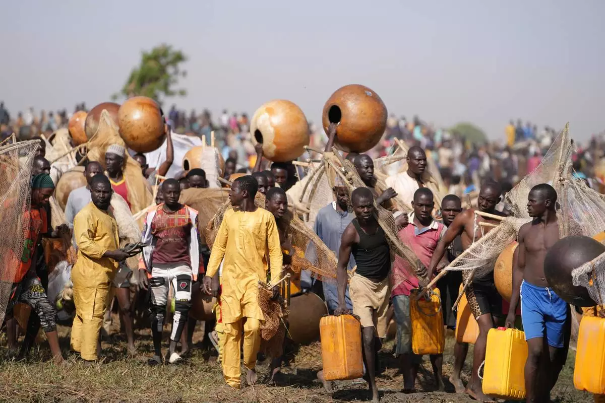 Several thousand onlookers, including President Bola Tinubu, cheered them on as they competed to hook the biggest fish, even as security issues kept some people away. Competitors used only traditional angling techniques, such as hand-woven nets and large calabash gourds. Some used their bare hands to demonstrate their skills.