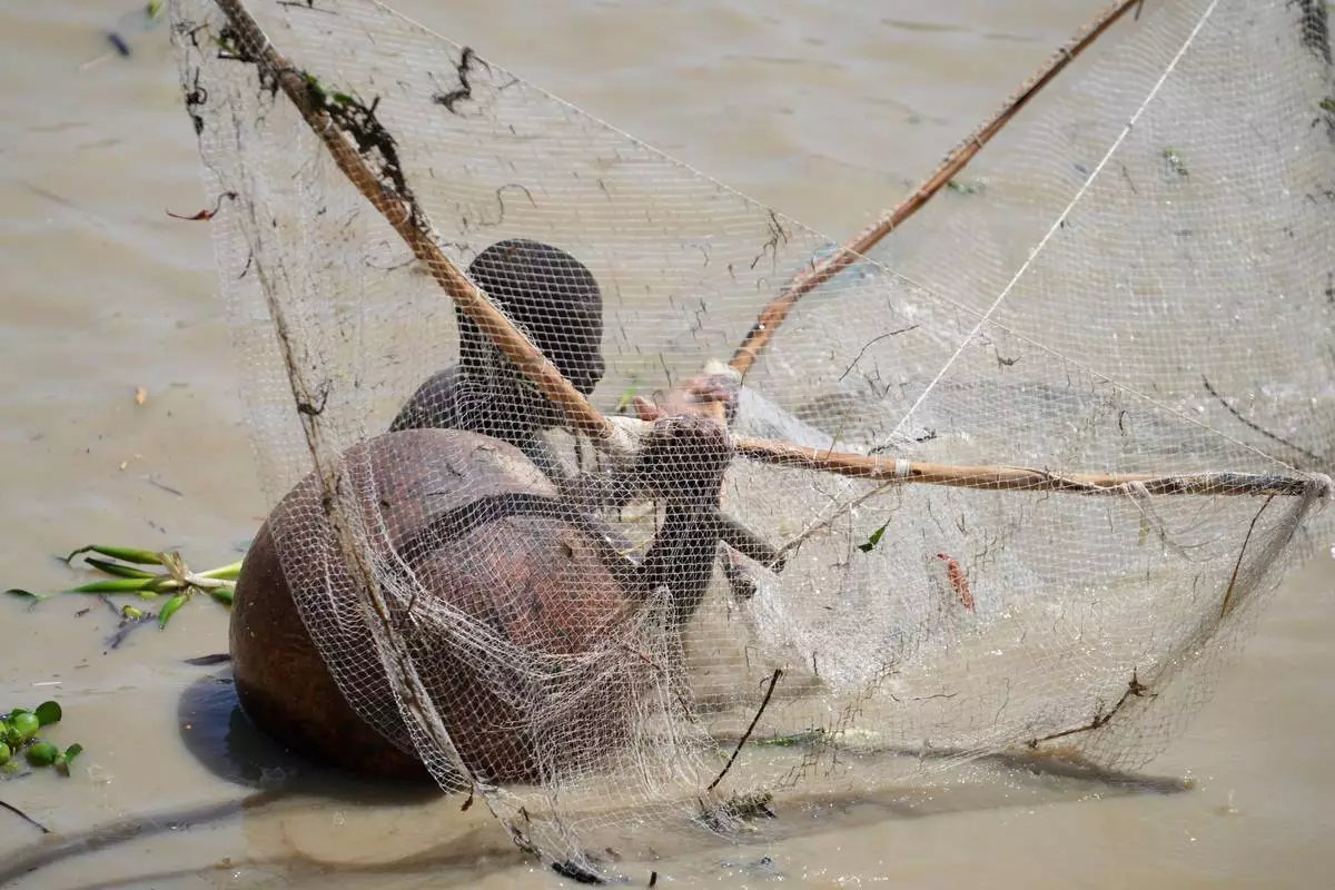 A fishermen searches for fish during the Argungu cultural fishing festival in Argungu, Kebbi , Northern Nigeria, Saturday, Feb.14, 2026. (AP Photo/Sunday Alamba)