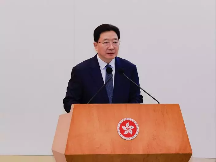 The Chief Executive, Mr John Lee, speaks at the seminar on a white paper titled "Hong Kong: Safeguarding China's National Security Under the Framework of One Country, Two Systems" today (February 14). Source: HKSAR Government Press Releases