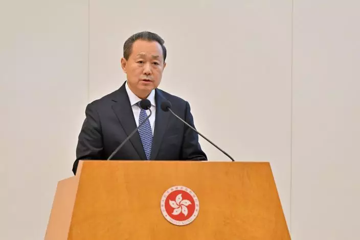 The Hong Kong Special Administrative Region (HKSAR) Government held a seminar on the white paper titled "Hong Kong: Safeguarding China's National Security Under the Framework of One Country, Two Systems" at the Central Government Offices this morning (February 14). Photo shows the Head of the Office for Safeguarding National Security of the Central People's Government in the HKSAR, Mr Dong Jingwei, speaking in the seminar. Source: HKSAR Government Press Releases