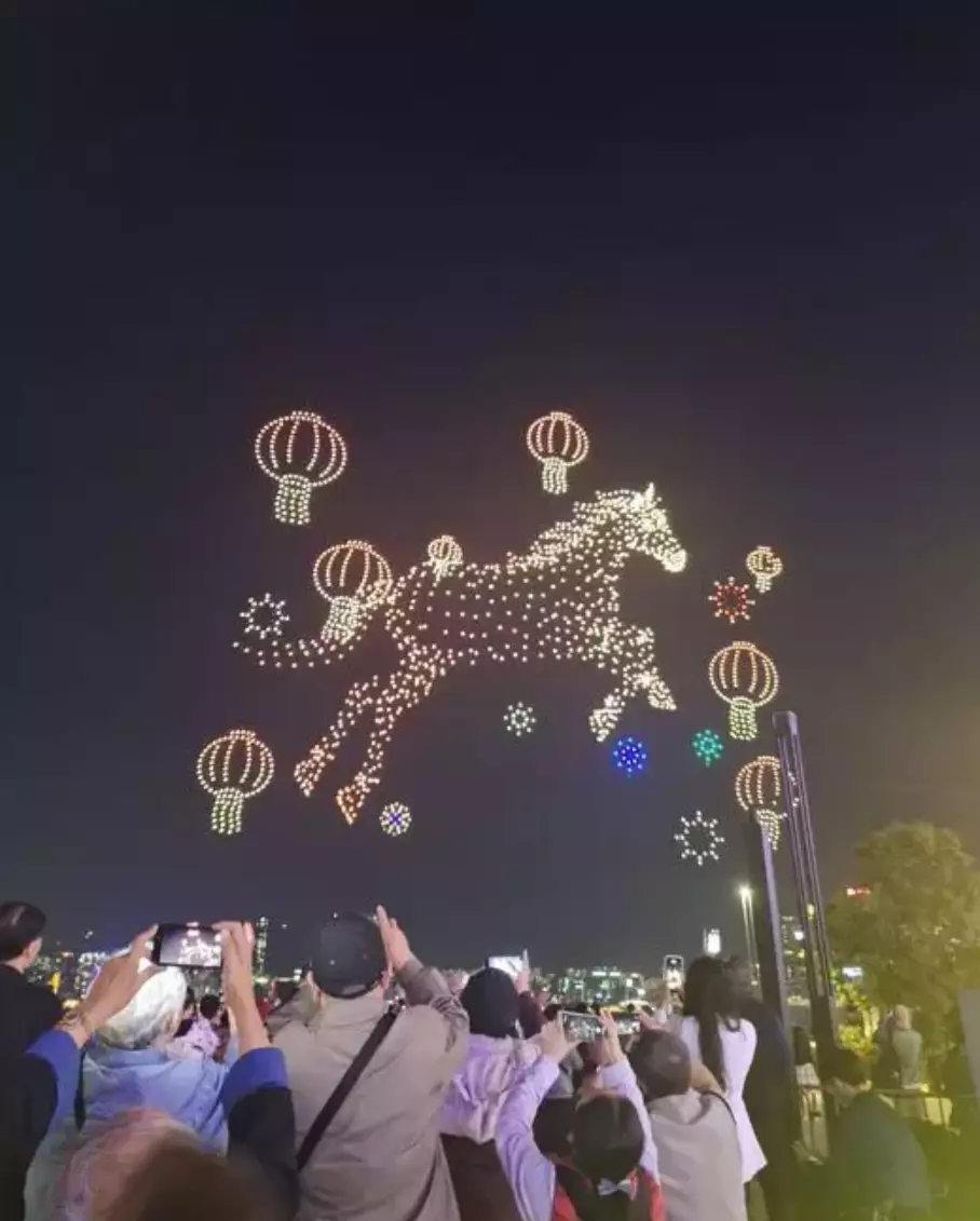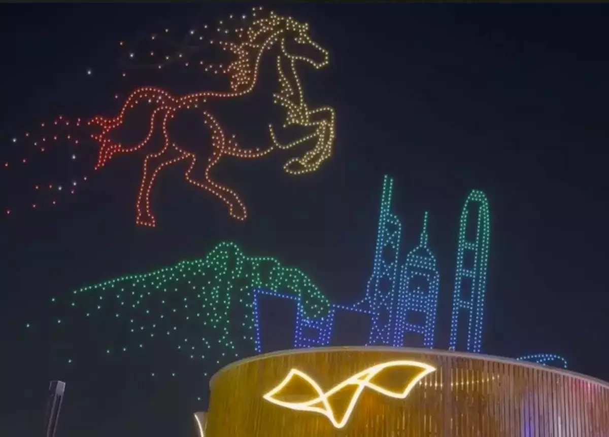 The drone show, themed "Galloping Horses Welcoming Spring, Bauhinia Celebrating the Chinese New Year," featured 2,026 drones displaying galloping horses, fireworks, lanterns, and other images featuring Chinese New Year elements. The night sky over Victoria Harbour was illuminated with images of spirited horses and local landmarks, including the Hong Kong-Zhuhai-Macau Bridge, Lion Rock, the Victoria Harbour Skyscrapers, and Golden Bauhinia Square. Coupled with auspicious phrases such as "Ten Thousand Horses Galloping", "Happy Year of the Horse" and "May Hong Kong Be Prosperous and Flourishing", etc., the show symbolized Hong Kong's leading position and rapid progress in the upcoming Year of the Horse, wishing the city prosperity, stability, and a peaceful and happy life for the residents.