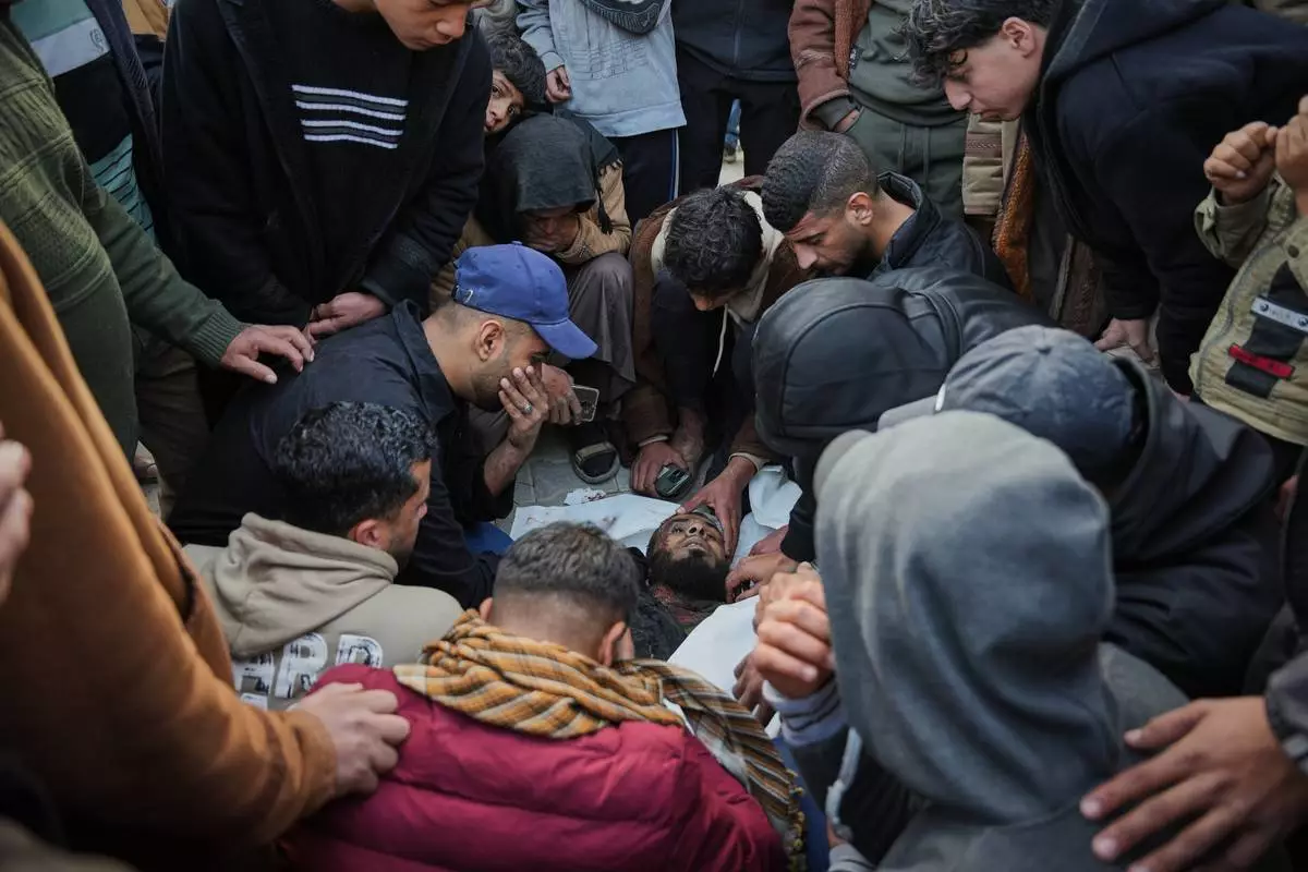 The dead include five men in their 20s who were killed in the eastern part of Khan Younis, according to Nasser Hospital, which received the bodies. The strike hit a group of people close to the Yellow Line that separates Israeli-controlled areas from the rest of Gaza, it said.