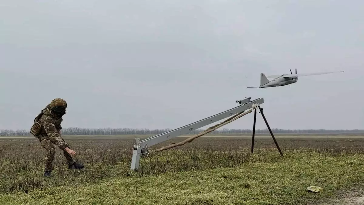 In this image made from video provided by Russian Defense Ministry Press Service on Sunday, Feb. 15, 2026, shows a Russian serviceman launches an Orlan-10 reconnaissance drone tfor an action in an undisclosed location in Ukraine. (Russian Defense Ministry Press Service via AP)