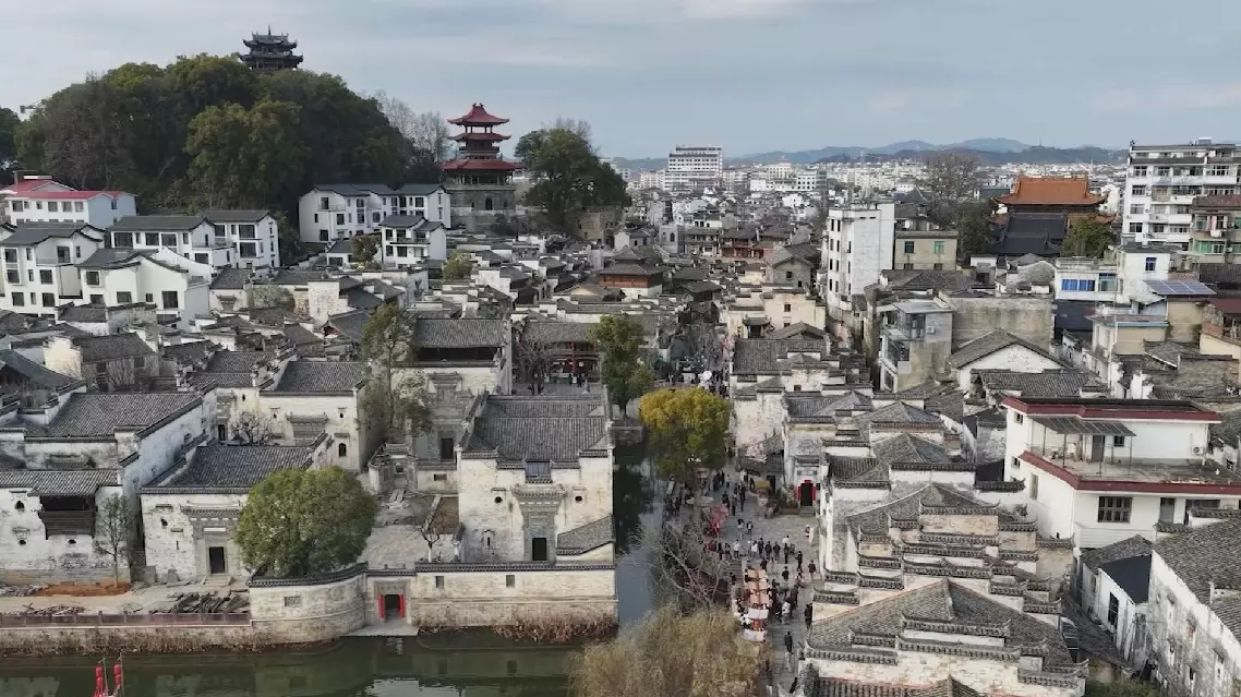 In Wuyuan County, east China's Jiangxi Province, the ancient town of Xian'gao is buzzing with life beneath its thousand-year-old city walls. A traditional folk market has opened just in time for the Chinese New Year's Eve, offering an authentic taste of Huizhou culture.