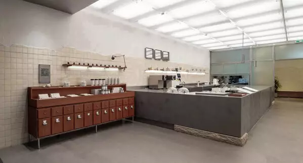 Designed as an immersive creative showcase, the store transforms the R&D process visually. Displays of raw tea leaves, botanical ingredients, and extraction equipment offer transparency into craftsmanship and invite guests to engage with the story behind every drink.