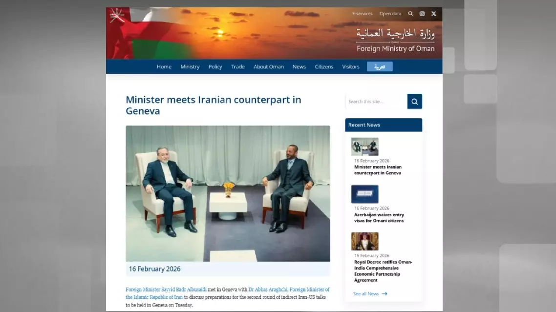 Omani and Iranian top diplomats met in Geneva, Switzerland, on Monday to finalize preparations for a second round of indirect talks between Tehran and Washington, amid high tension in the Gulf and the Middle East.