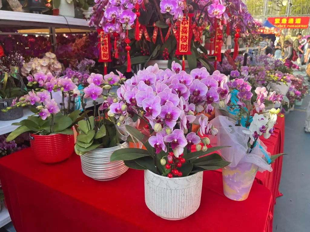Mr. John Lee said he specifically bought three genres of flowers at the fair: First, pussy willow, currently budding and poised to bloom in spring, symbolizing vitality; Second, solanum mammosum, signifying joy and peace; Third, orchids, known as the "noble flower". He mentioned that there are 14 Chinese New Year Fairs across Hong Kong this year, each with its own unique characteristics, featuring stalls selling dried goods, fresh products, food, etc., making him expect the fairs to become increasingly crowded as the night went on.