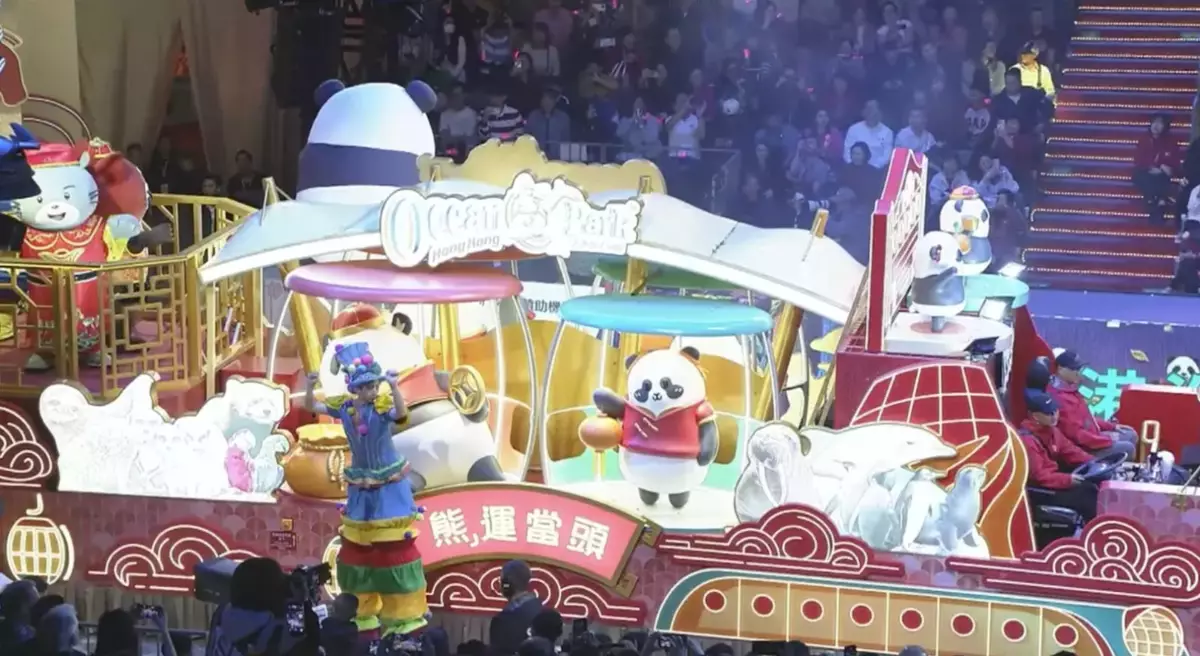 The Ocean Park Corporation's float featured not only the lovely pandas, but also the Park's iconic Ocean Express, cable cars, and Ferris wheel, alongside Whiskers & Friends and adorable animal ambassadors, wishing everyone success and endless joy in the Year of the Horse.