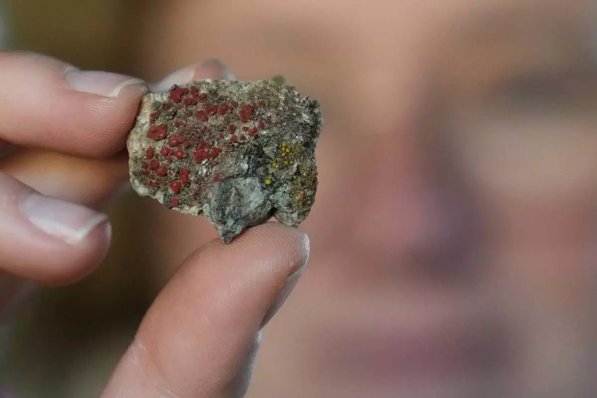 Jessica Allen, of the California Lichen Society, holds up a firedot lichen found during a CALS field trip at the University of California, Davis' McLaughlin Reserve in Lower Lake, Calif., Saturday, Jan. 24, 2026. (AP Photo/Jeff Chiu)