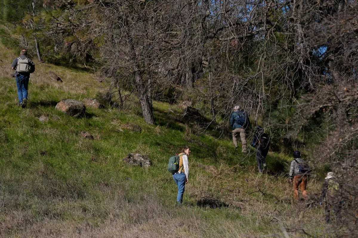 A group of California Lichen Society members and guests take part in a field trip at the University of California, Davis' McLaughlin Reserve in Lower Lake, Calif., Saturday, Jan. 24, 2026. (AP Photo/Jeff Chiu)