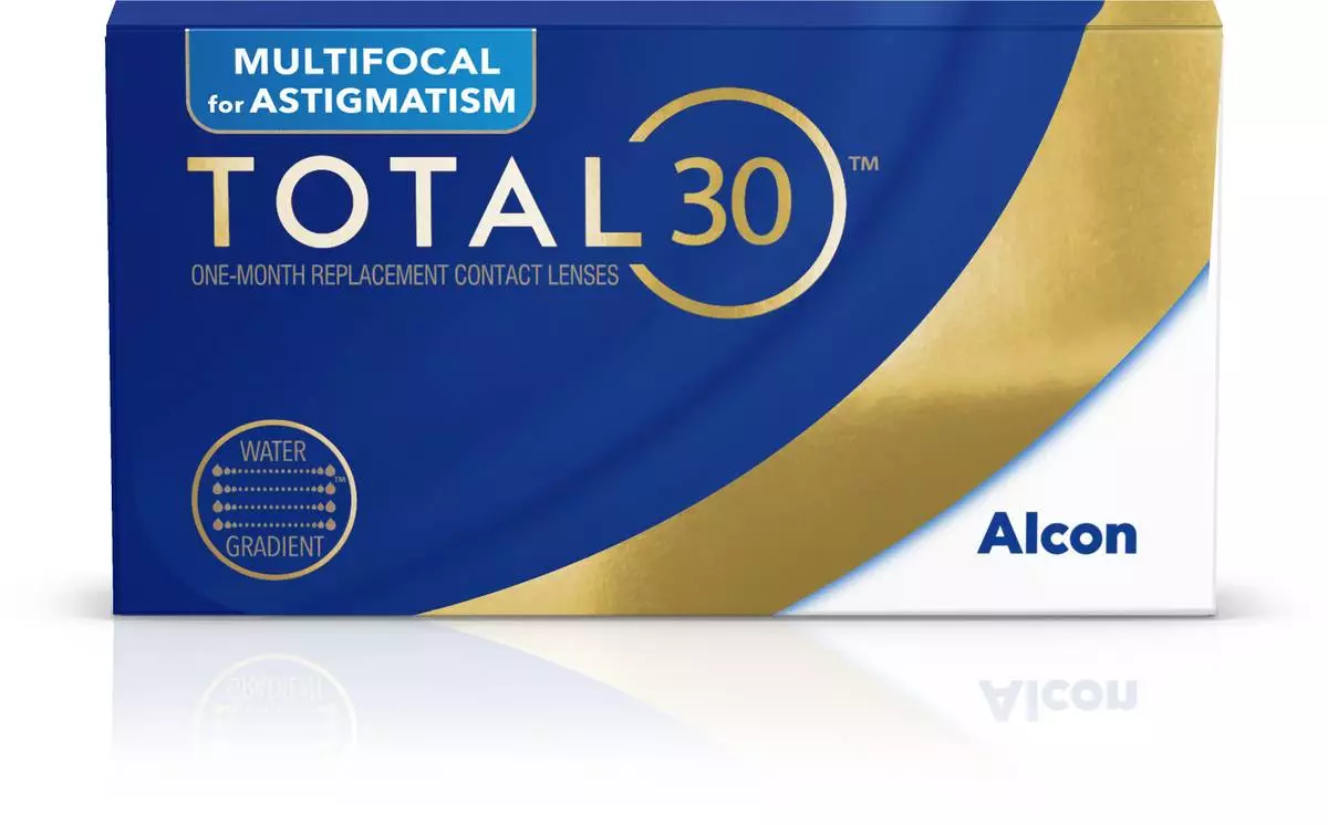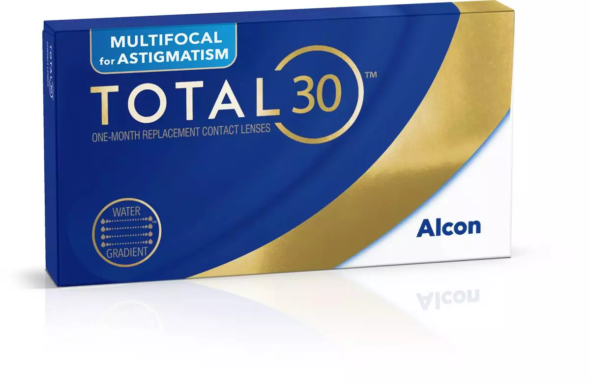 TOTAL30® Multifocal for Astigmatism World's Only Multifocal Toric Contact Lens with Water Gradient Technology.