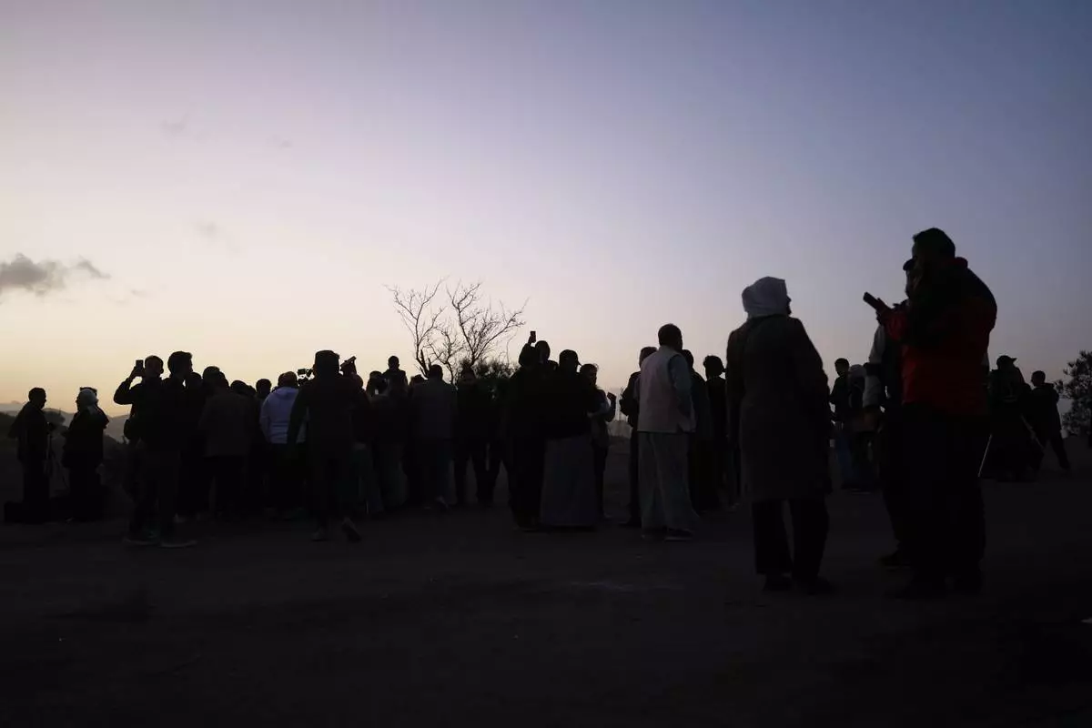People gather to sight the Ramadan crescent moon marking the beginning of the holy month of Ramadan at the foothills of Mount Qasioun near the Tomb of the Unknown Soldier in Damascus, Tuesday, Feb. 17, 2026. (AP Photo/Ghaith Alsayed)