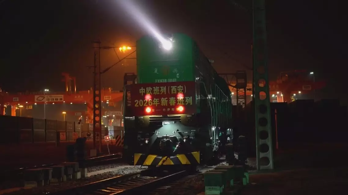 The first China-Europe freight train of the Year of the Horse departed from Guojigang Railway Station in Xi'an City, northwestern Shaanxi Province, at 03:55 on Tuesday, which marked the Spring Festival, or the Chinese New Year.