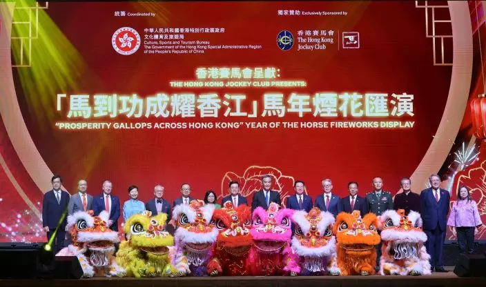 My thanks to the Hong Kong Jockey Club for sponsoring tonight's fireworks extravaganza. The Jockey Club, let me add, has launched the Year of the Horse campaign, featuring international equestrian shows and wide-ranging cultural, sports and family events, all year long, offering yet more reasons to visit and explore Hong Kong.