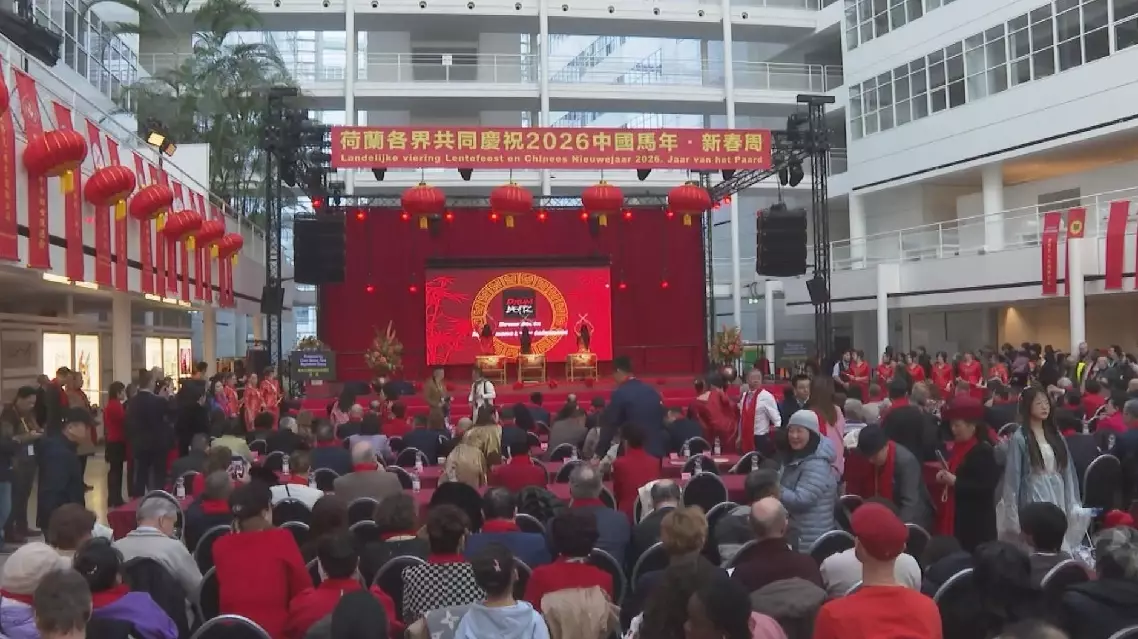 On Saturday, a strong festive atmosphere filled the city hall of The Hague, the Netherlands where red lanterns hung overhead and cheerful New Year melodies filled the air.
