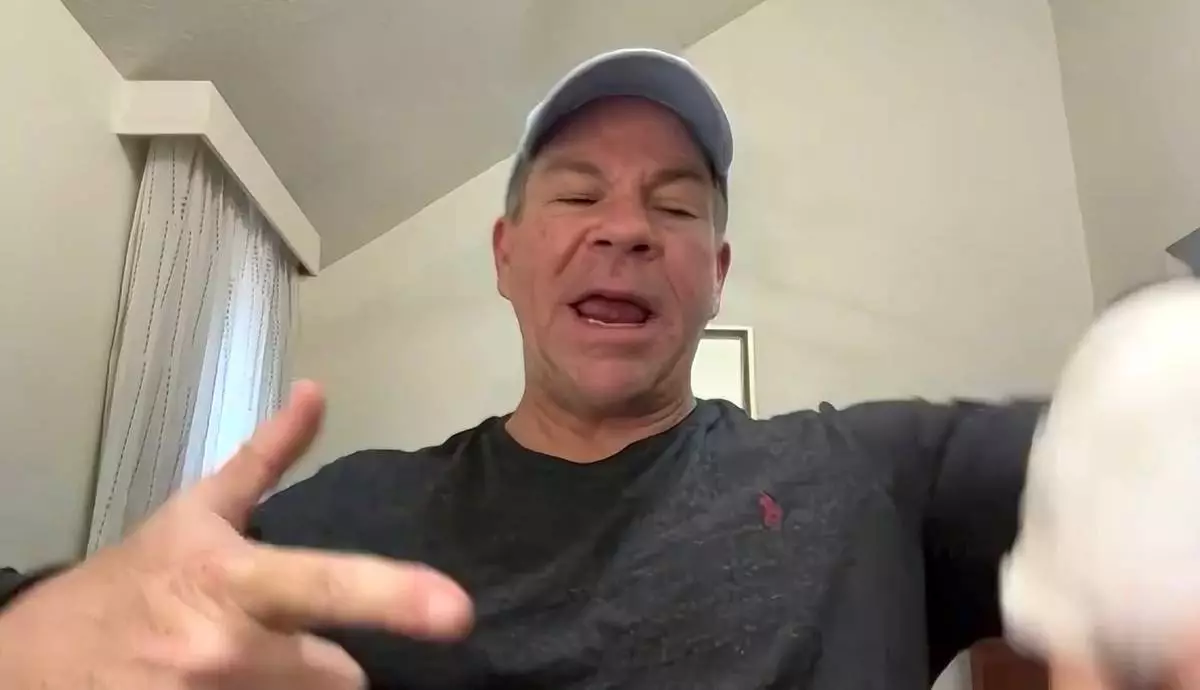 In this image taken from video, Michael Black, a Rhode Island man who helped stop a shooter at a high school hockey game on Monday, gestures during an interview with The Associated Press, Thursday, Feb. 19, 2026 in Spartanburg, S.C. (AP Photo)