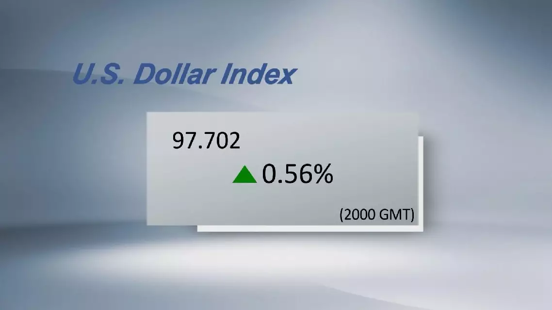 The dollar index, which measures the greenback against six major peers, went up 0.56 percent to 97.702 at 15:00 (2000 GMT).