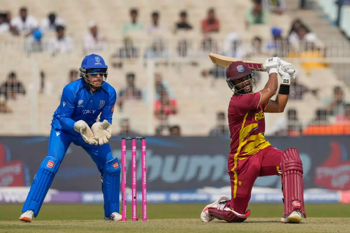 West Indies captain Shai Hope starred with 75 off 46 balls, his second straight World Cup half-century, and the next best score was Ben Manenti's 26 for Italy.