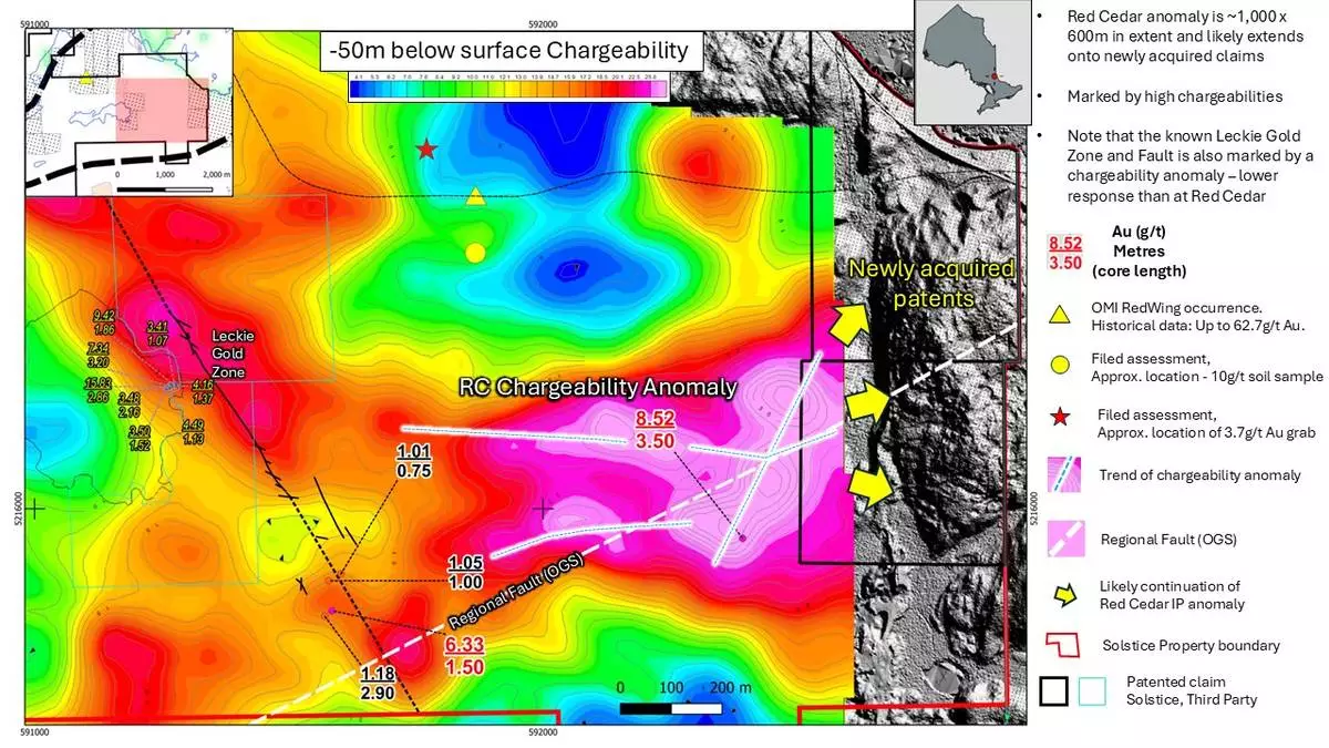 Pablo McDonald, CEO, stated, “ We are excited to have begun our winter 2026 drill program, which builds upon our high-grade Red Cedar discovery from our inaugural 2025 drill program at Strathy. The presence of this high-grade gold intercept within a large (600 m by 1,000m), strong IP anomaly highlights the potential for a mineralized system at Red Cedar. Testing this extensive anomaly in what remains a largely unexplored area presents a unique, high-quality opportunity in the Abitibi. With drilling underway and assay results coming shortly after the program, this marks an exciting time for Solstice shareholders ahead of what we anticipate being a strong and potentially transformative 2026. ”