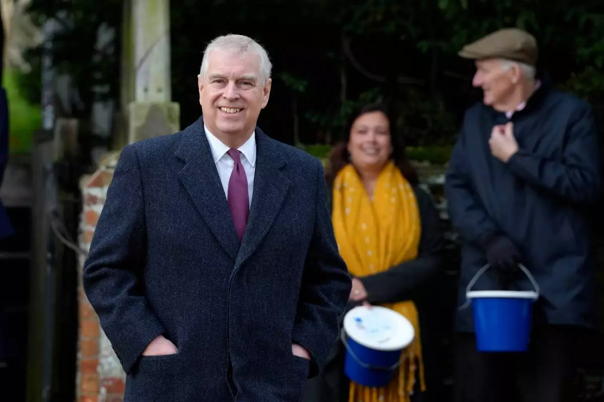 FILE - Prince Andrew leaves after attending the Christmas day service at St Mary Magdalene Church in Sandringham in Norfolk, England, Dec. 25, 2022. (AP Photo/Kirsty Wigglesworth, File)