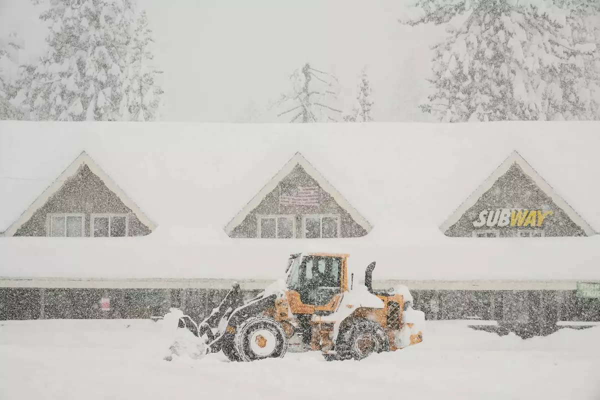 Snow is plowed in front of businesses during a snow storm Thursday, Feb. 19, 2026, in Soda Springs, Calif. (AP Photo/Godofredo A. Vásquez)