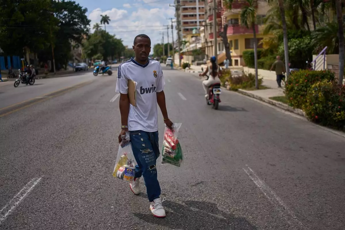 HAVANA (AP) — Guillermo Beltrán walked away with two heavy bags on Thursday, each containing an essential haul — rice, beans, amaranth and crackers — complemented by a bottle of oil, large cans of sardines and canned peaches. Every label carried the same simple phrase “Made in Mexico.”