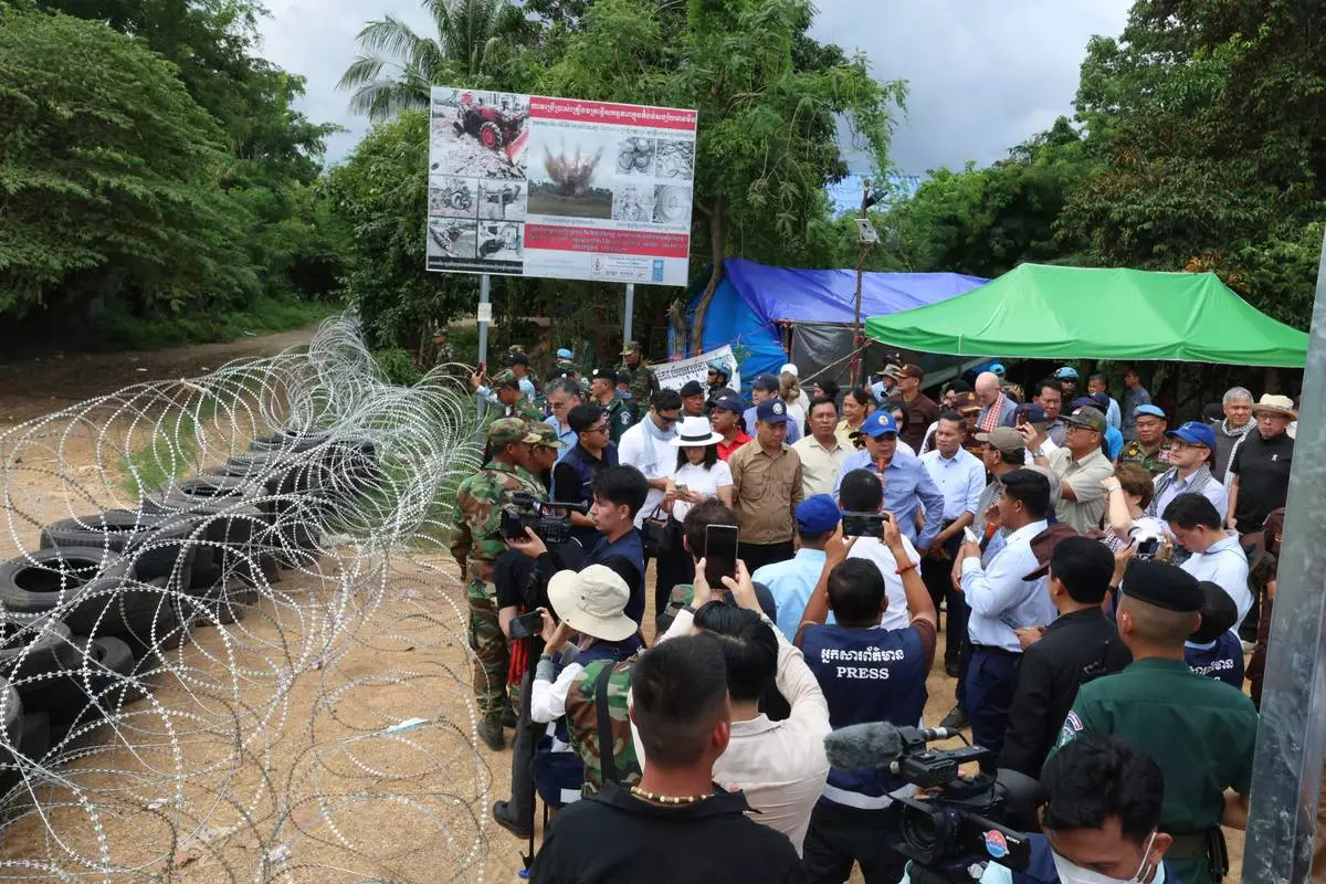 The image was widely republished by Thai media outlets, which alleged that it showed several unplanted land mines in the background.