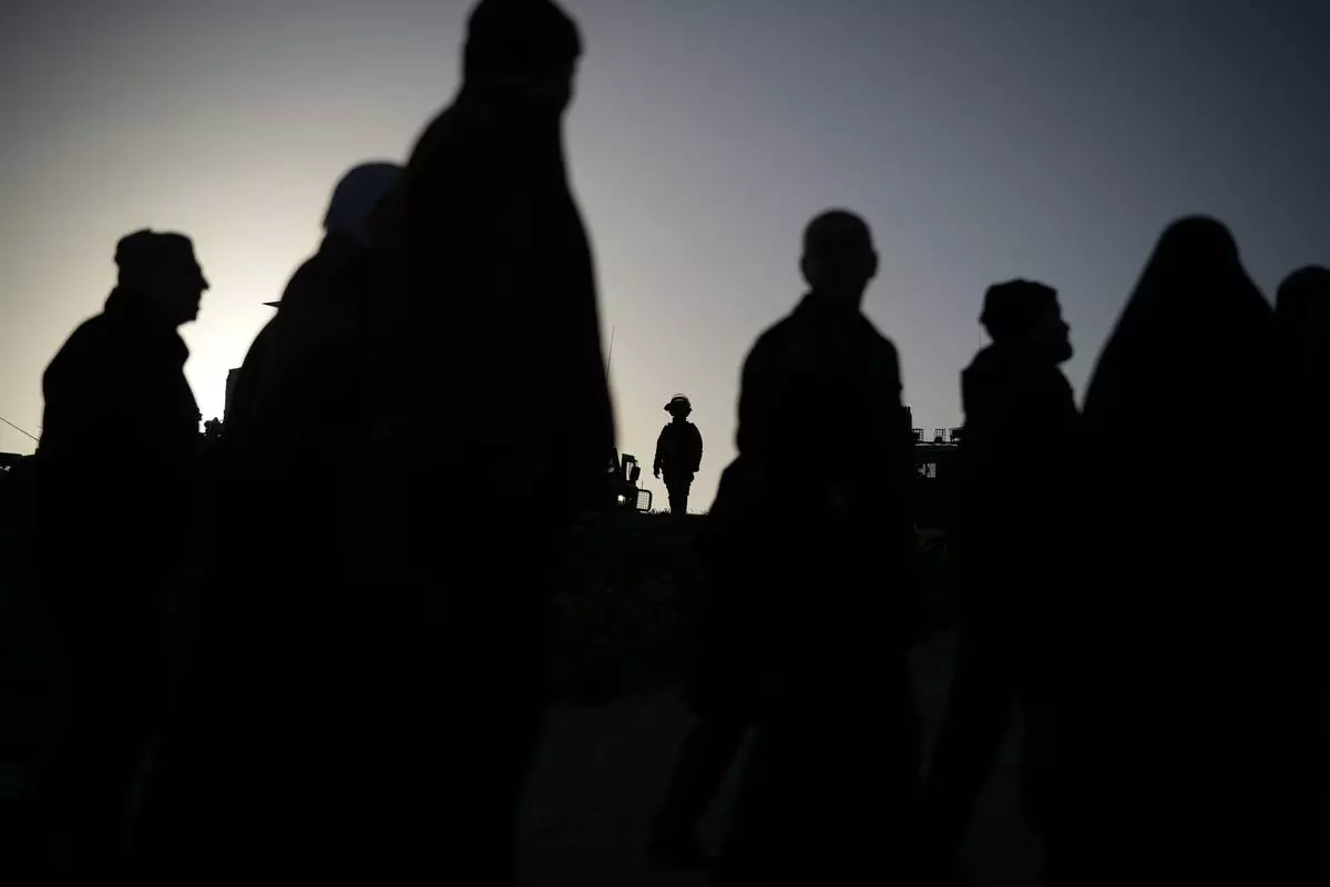 Israeli soldiers stand guard as Palestinian worshippers line up to pass through the Israeli military Qalandia checkpoint between the West Bank city of Ramallah and Jerusalem on their way to attend Friday prayers at Al-Aqsa Mosque during the Muslim holy month of Ramadan, Friday, Feb. 20, 2026. (AP Photo/Leo Correa)