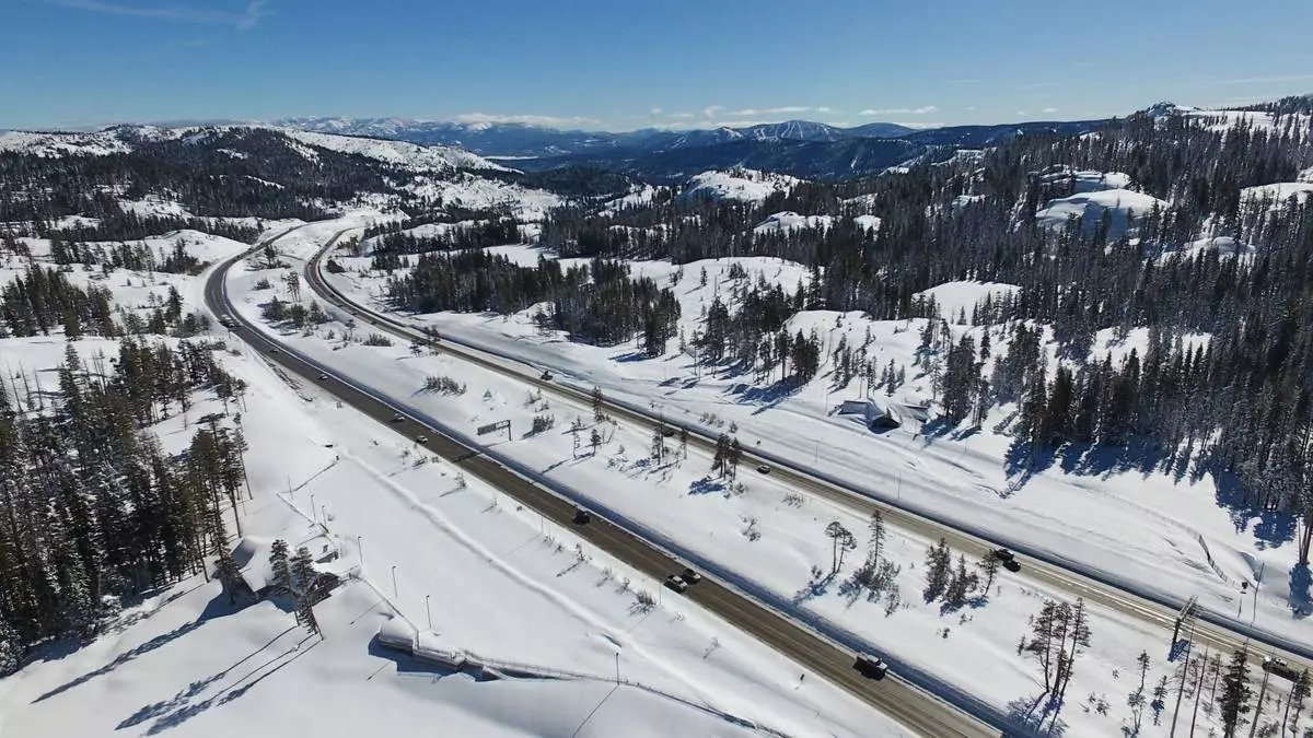 Motorists make their way along interstate 80 after a snow storm Friday, Feb. 20, 2026, near Soda Springs, Calif. (AP Photo/Godofredo A. Vásquez)