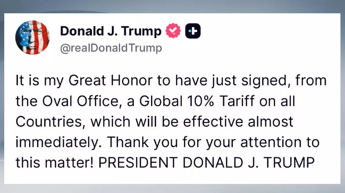 U.S. President Donald Trump has signed an executive order to impose 10 percent tariffs on imported goods from all countries, according to one of his posts on social media on Friday.