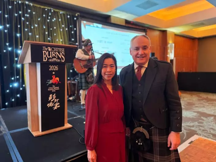 The Hong Kong Economic and Trade Office in London (London ETO), together with Invest Hong Kong (InvestHK) and the Hong Kong Trade Development Council (HKTDC) under the Economic and Trade Express platform, collaborated with the China-Britain Business Council (CBBC) to host the "Toast to the Horse" pre-dinner reception for the Chinese Burns Supper in Edinburgh, Scotland, on February 19 (Edinburgh time). The event celebrated both the Year of the Horse and Burns Night, bringing together business and community leaders from Scotland.
