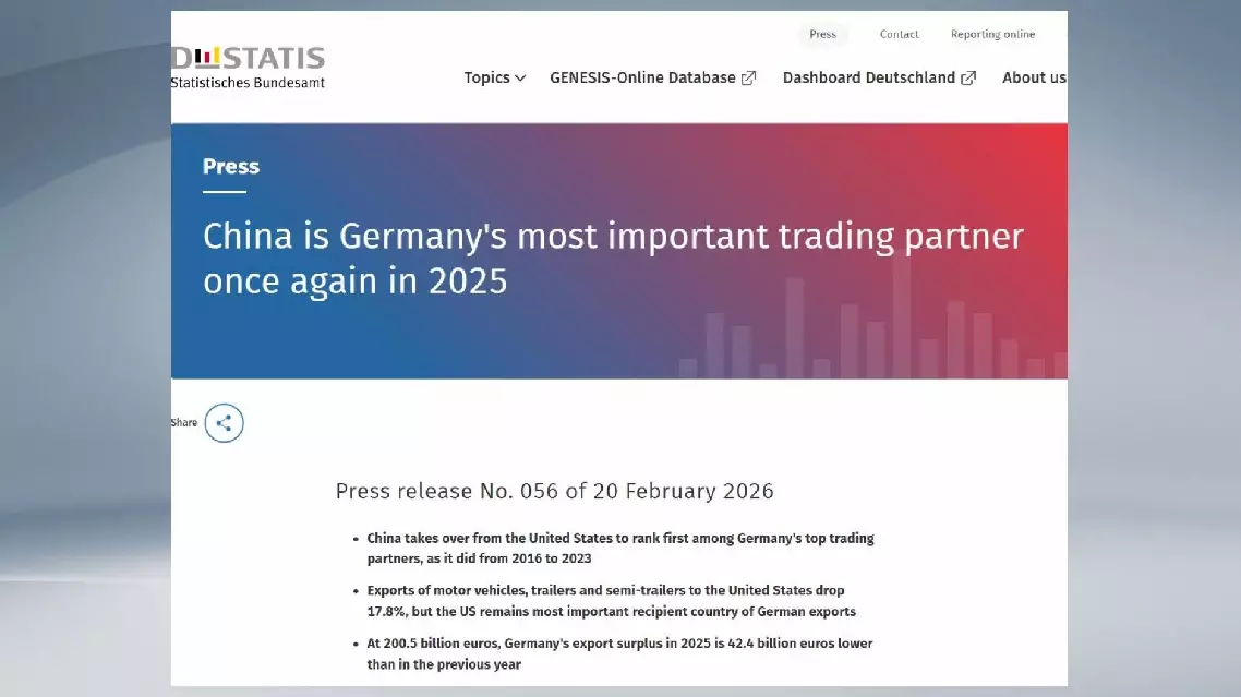 Germany's trade in goods with China grew by 2.1 percent in 2025, the report said.