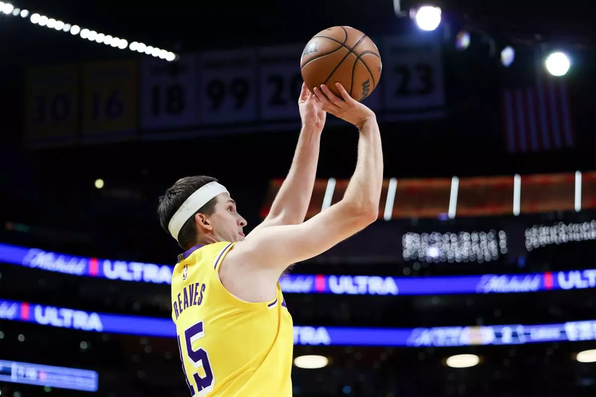Los Angeles Lakers guard Austin Reaves looks to shoot during the first half of an NBA basketball game against the Los Angeles Clippers, Friday, Feb. 20, 2026, in Los Angeles. (AP Photo/Jessie Alcheh)