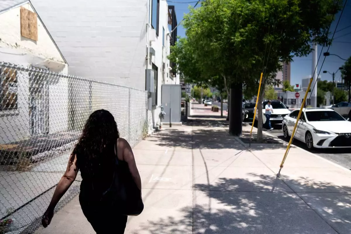 FILE - A woman adopted as a toddler by an American war veteran, who he found in the 1970s in an Iranian orphanage and raised as a Christian, walks down a Las Vegas street Wednesday, June 26, 2024. (AP Photo/David Goldman, File)