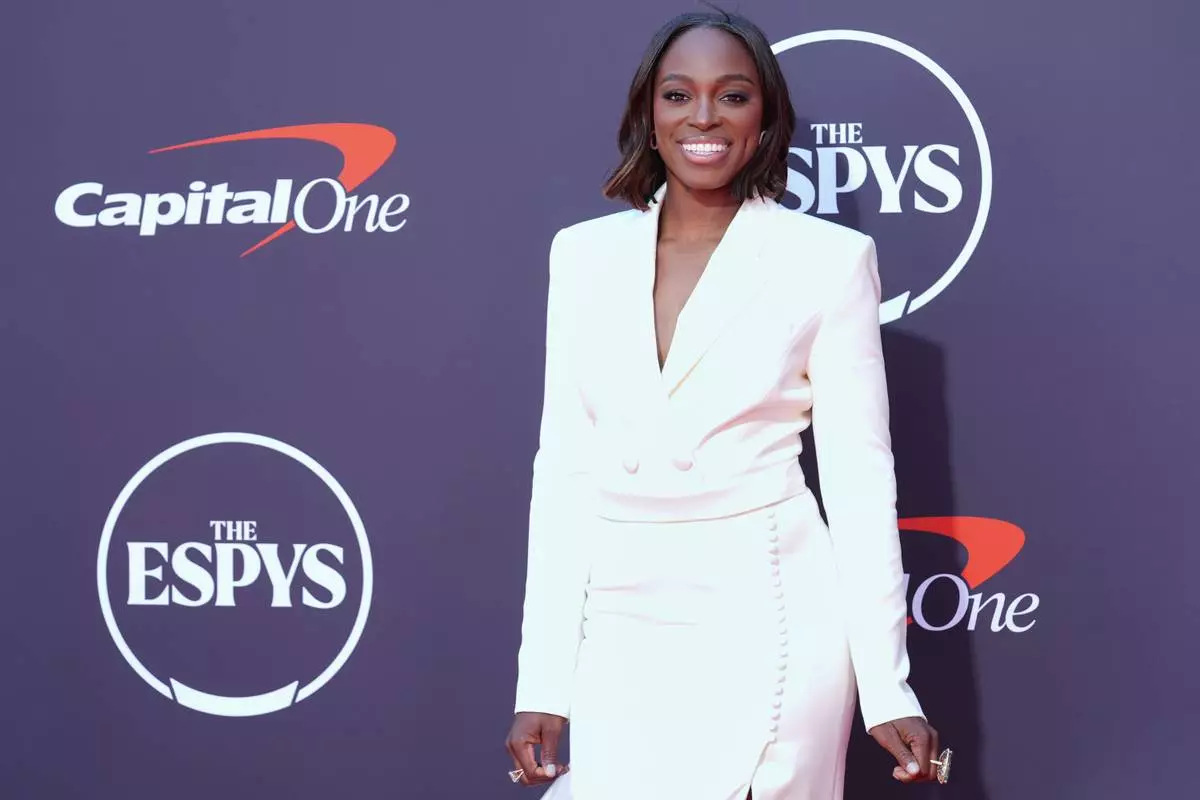 FILE - Sloane Stephens arrives at the ESPY Awards at the Dolby Theatre in Los Angeles, July 16, 2025. (AP Photo/Chris Pizzello, File)