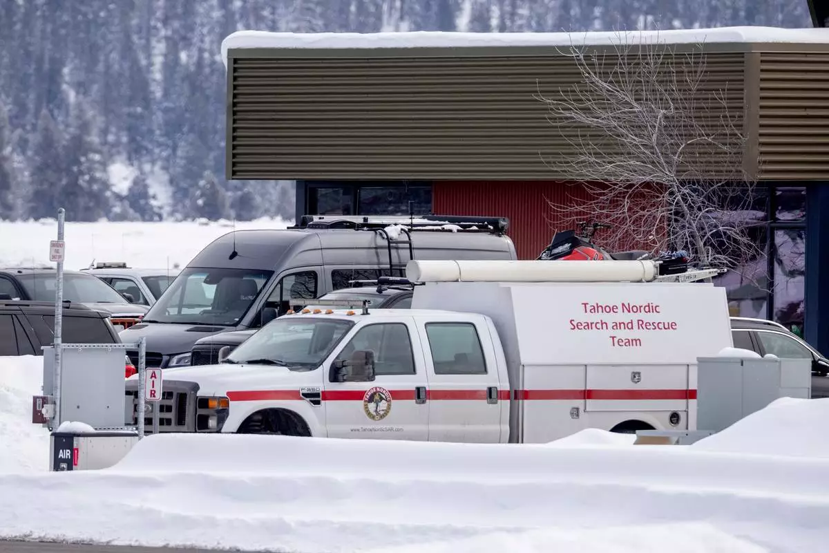 A Tahoe Nordic Search and Rescue Team vehicle is seen outside Truckee Airport, as the effort continues to recover the bodies of skiers who died during an avalanche, in Truckee, Calif., Saturday, Feb. 21, 2026. (Stephen Lam/San Francisco Chronicle via AP)