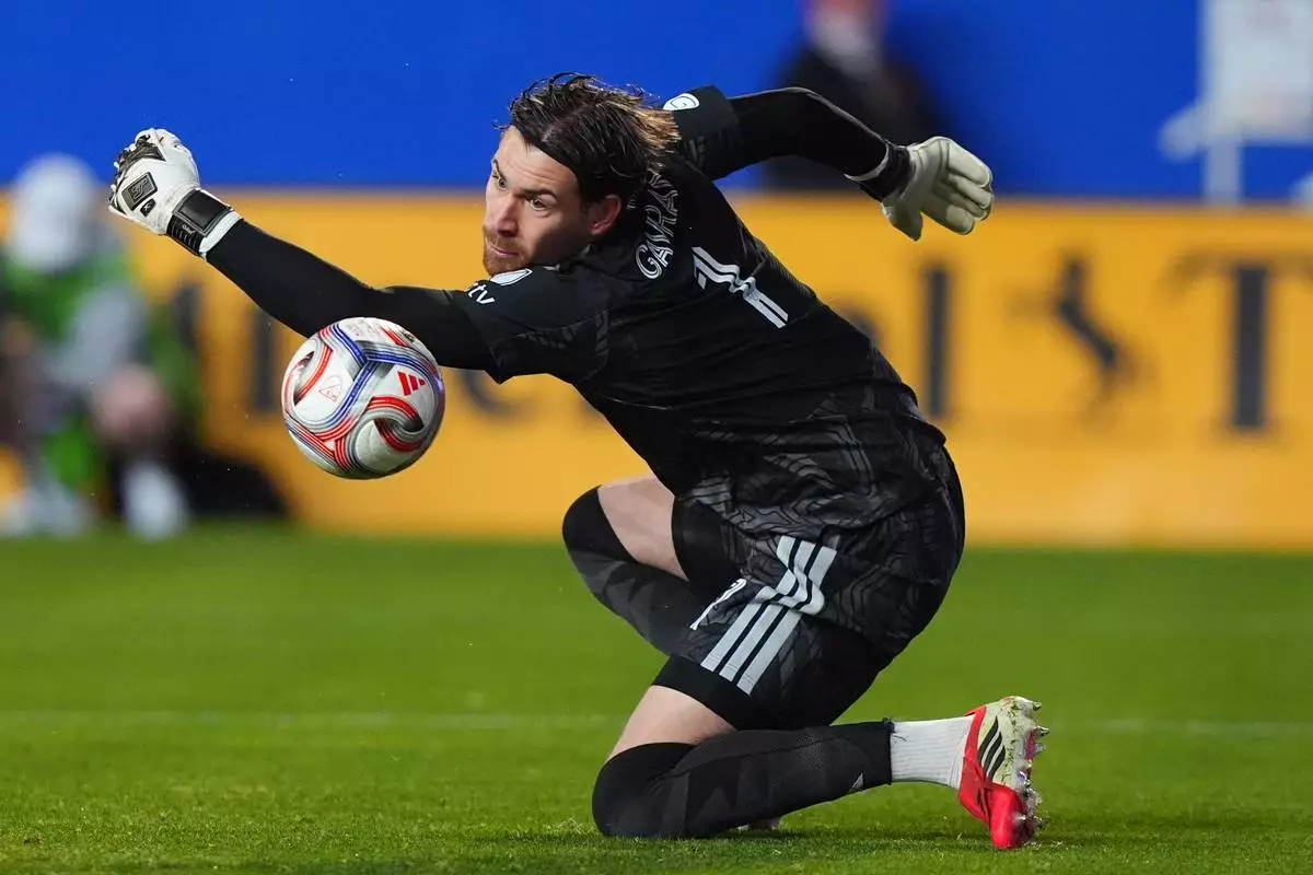 Toronto FC goalie Luka Gavran cannot stop a shot by FC Dallas forward Petar Musa, allowing a goal, during the first half of an MLS soccer match in Frisco, Texas, Saturday, Feb. 21, 2026. (AP Photo/LM Otero)