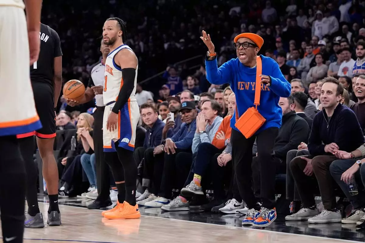 Spike Lee screams during the second half of an NBA basketball game between the New York Knicks and the Houston Rockets, Saturday, Feb. 21, 2026, in New York. (AP Photo/Yuki Iwamura)