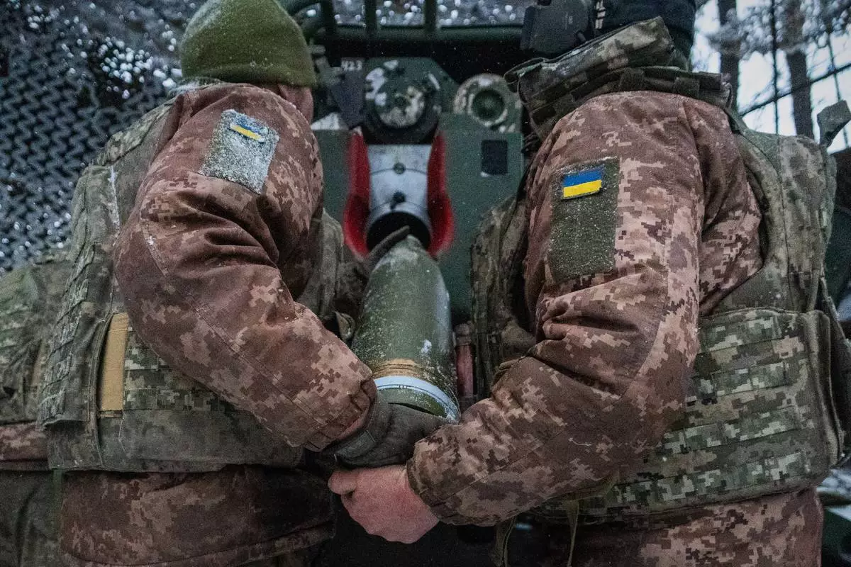 FILE - Ukrainian servicemen load an artillery shell before firing at Russian positions on the front line in Kharkiv region of Ukraine, Wednesday, Feb. 18, 2026. (AP Photo/Andrii Marienko, File)